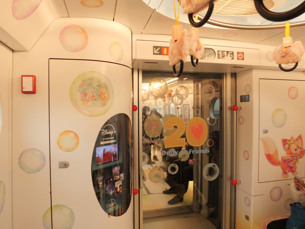 ダッフィー&フレンズ20周年ラッピングラインの車内
